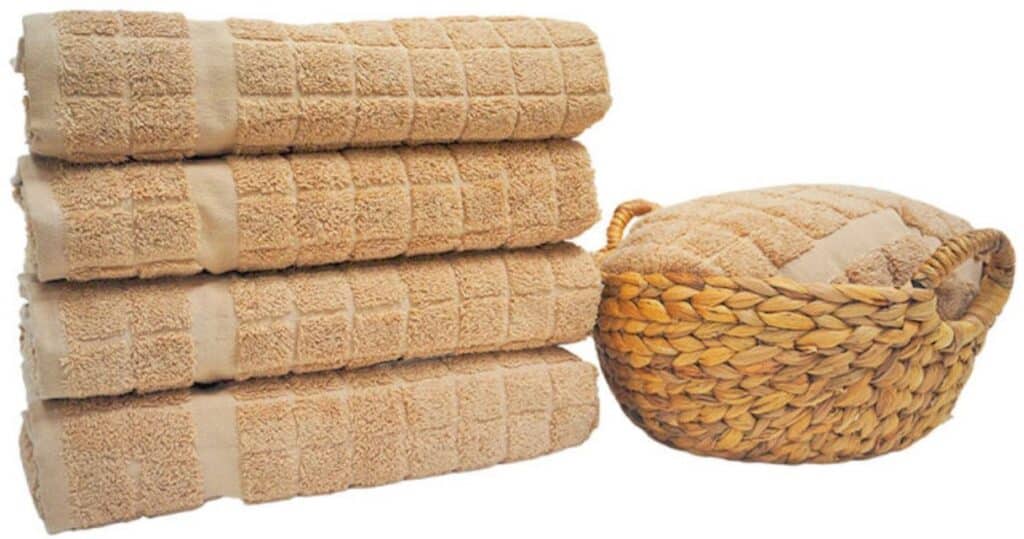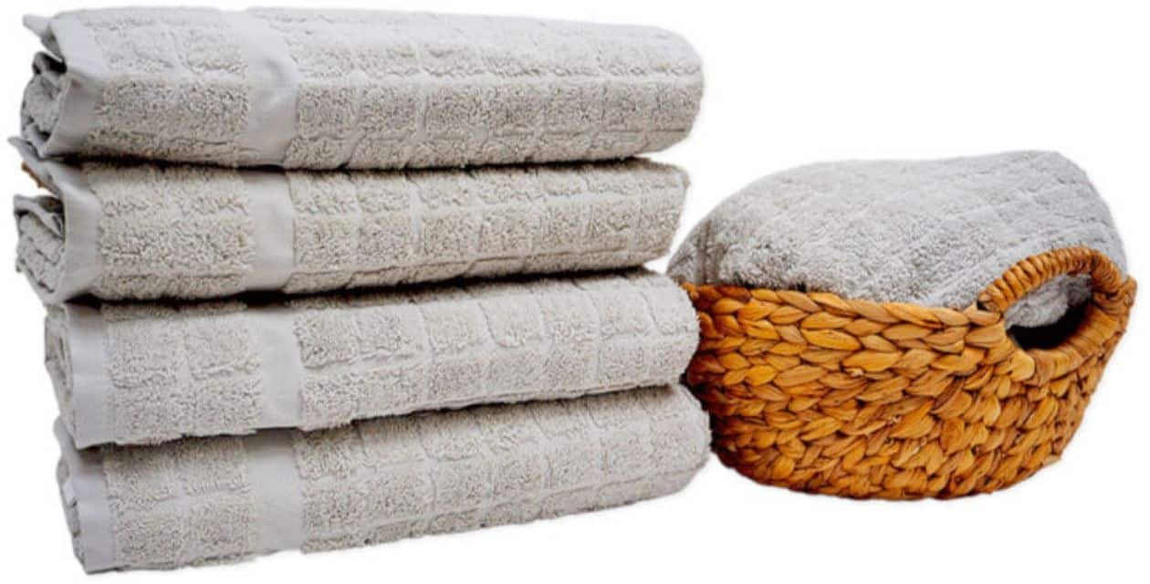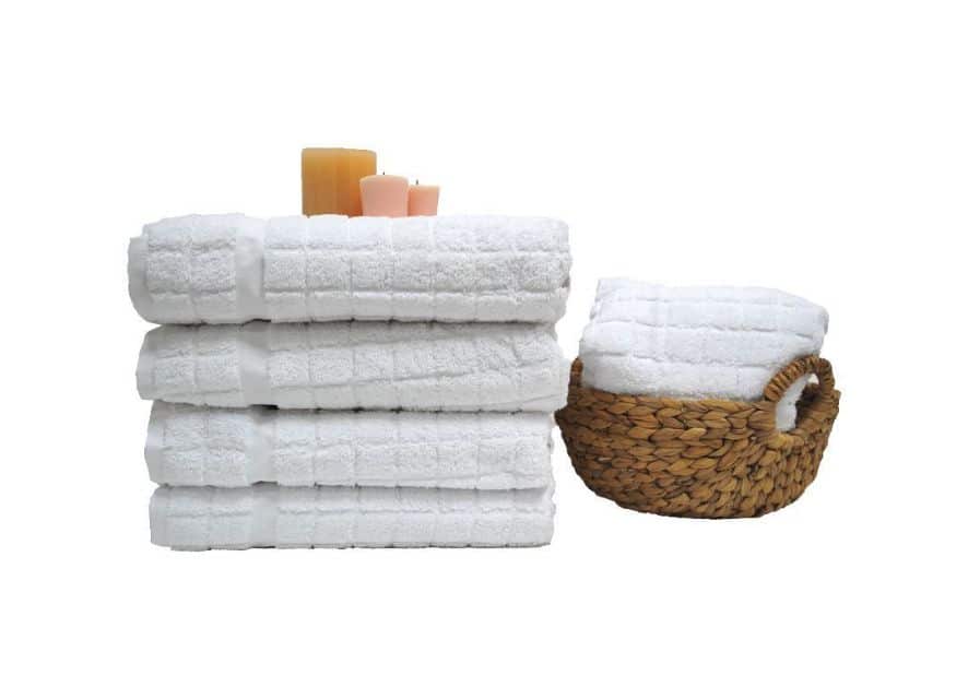 המגבות עשויות 100% כותנה רכה במיוחד, עם דוגמת רשת עדינה למראה אלגנטי ומפנק.